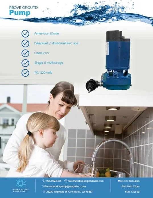 We carry an impressive selection of top brands, ensuring you receive only the best quality products. Our brands include Simple Pump, Wellmate, Amtrol, Flint & Walling, Goulds Pumps, Webtrol, and Sta-Rite. Our inventory boasts a full line of Deep and Shallow Well Jet Pumps, Submersible, Fountain, Sump Pumps, and Centrifugal Pumps. Whatever your water pump requirements, we have the ideal solution. Contact us today to learn more about our exceptional range of products and services.